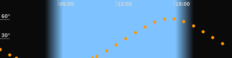 Höchster Stand (Kulmination)17:35 Uhr (h = 61.3°)