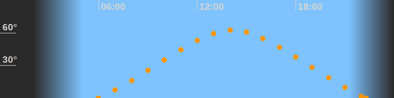 Höchster Stand (Kulmination)14:09 Uhr (h = 62.5°)