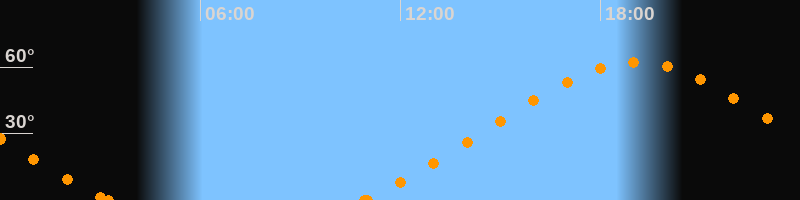 Höchster Stand (Kulmination)19:04 Uhr (h = 62.2°)