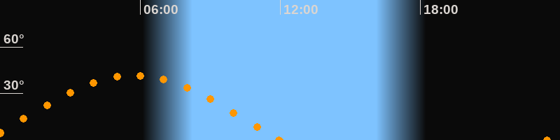Höchster Stand (Kulmination)05:43 Uhr (h = 41.6°)