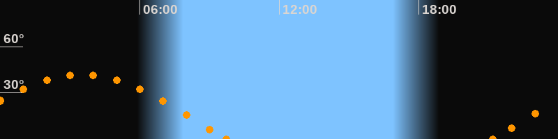Höchster Stand (Kulmination)03:29 Uhr (h = 41.7°)