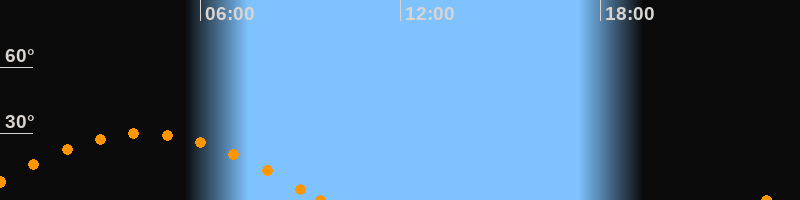 Höchster Stand (Kulmination)04:19 Uhr (h = 30.1°)