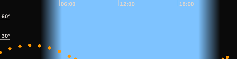 Aufgang22:34 Uhr im Südosten (αAz = 118.5°)
