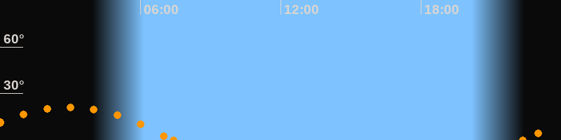 Aufgang22:20 Uhr im Südosten (αAz = 118.3°)