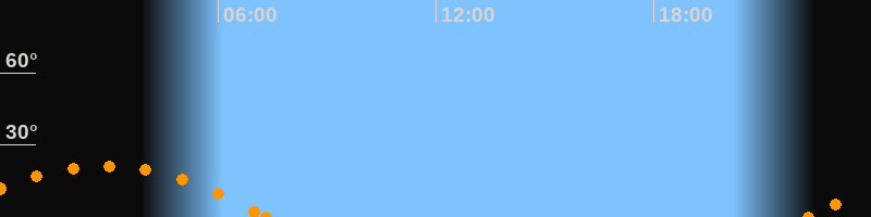 Aufgang22:16 Uhr im Südosten (αAz = 118.3°)