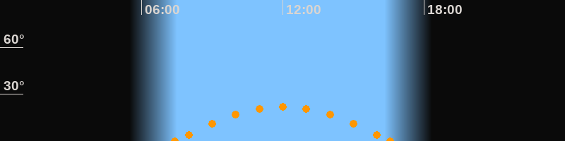 Höchster Stand (Kulmination)11:59 Uhr (h = 22°)