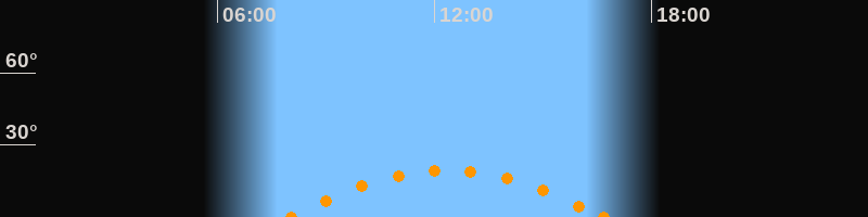 Höchster Stand (Kulmination)12:21 Uhr (h = 19.5°)