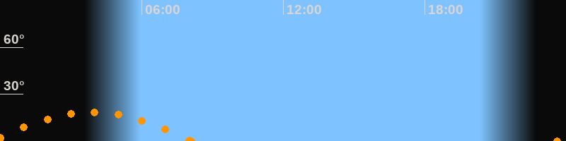 Aufgang23:36 Uhr im Südosten (αAz = 123.4°)