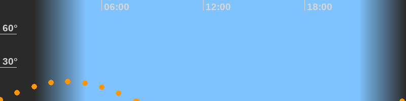 Aufgang23:46 Uhr im Südosten (αAz = 124.8°)
