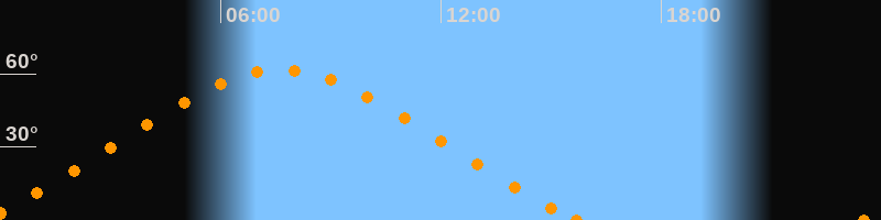 Höchster Stand (Kulmination)07:38 Uhr (h = 61.5°)