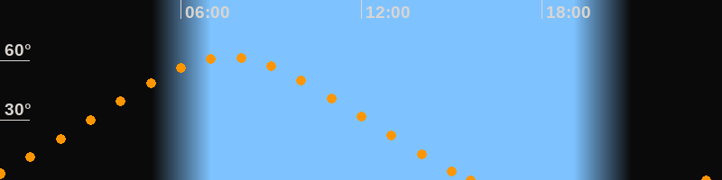 Höchster Stand (Kulmination)07:34 Uhr (h = 61.5°)