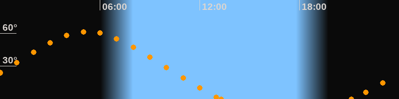 Höchster Stand (Kulmination)05:15 Uhr (h = 61.5°)