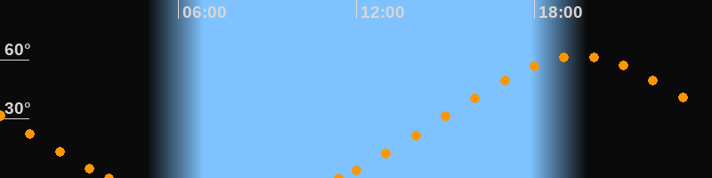 Höchster Stand (Kulmination)19:30 Uhr (h = 62°)