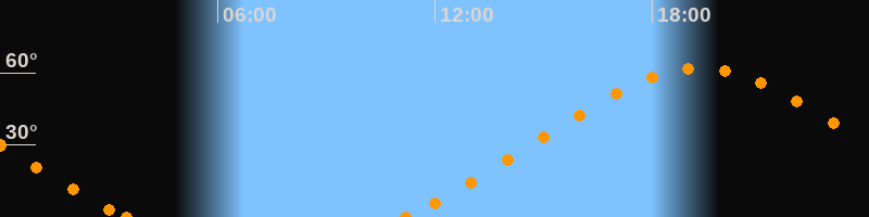 Höchster Stand (Kulmination)19:18 Uhr (h = 62°)