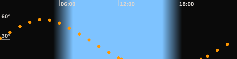 Höchster Stand (Kulmination)04:22 Uhr (h = 60.5°)