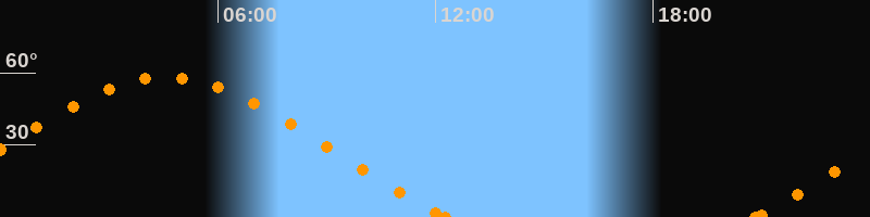 Höchster Stand (Kulmination)04:34 Uhr (h = 58.1°)
