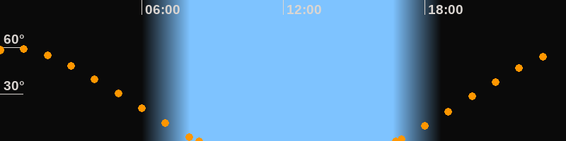 Höchster Stand (Kulmination)00:33 Uhr (h = 59.1°)