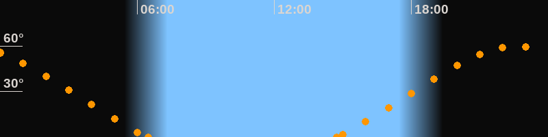 Höchster Stand (Kulmination)22:33 Uhr (h = 59.6°)