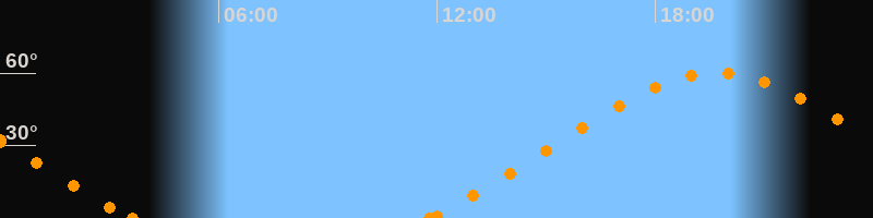 Höchster Stand (Kulmination)19:41 Uhr (h = 59.9°)