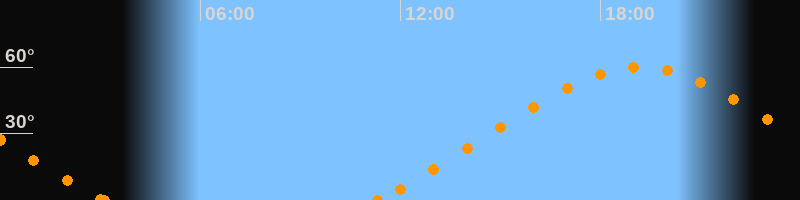 Höchster Stand (Kulmination)19:10 Uhr (h = 59.9°)