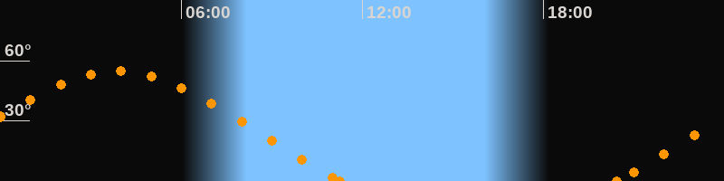 Aufgang20:25 Uhr im Nordosten (αAz = 64.1°)