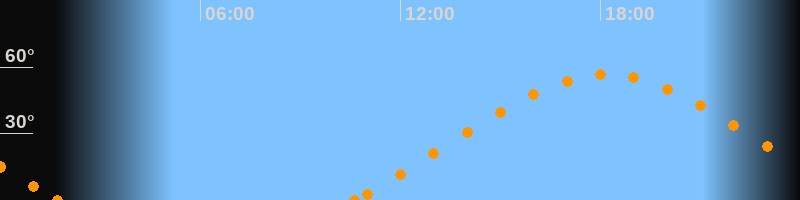 Höchster Stand (Kulmination)18:10 Uhr (h = 56.6°)