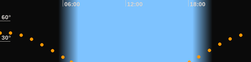 Höchster Stand (Kulmination)00:26 Uhr (h = 42.7°)
