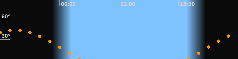 Höchster Stand (Kulmination)01:27 Uhr (h = 44.5°)