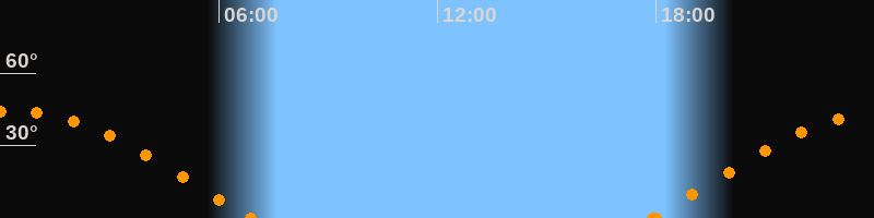 Höchster Stand (Kulmination)00:21 Uhr (h = 44.2°)