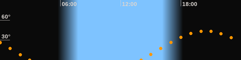 Höchster Stand (Kulmination)20:27 Uhr (h = 43.7°)