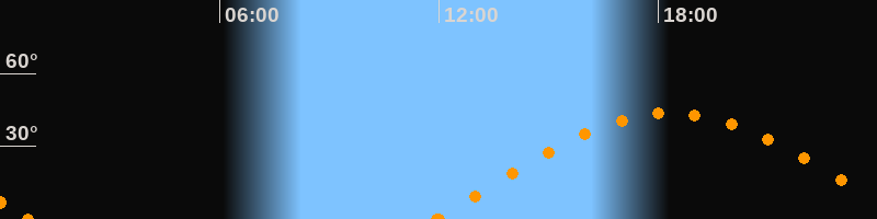 Höchster Stand (Kulmination)18:21 Uhr (h = 43.7°)