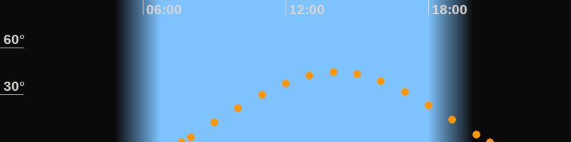 Höchster Stand (Kulmination)14:05 Uhr (h = 44.5°)