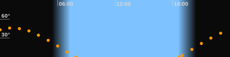 Höchster Stand (Kulmination)01:14 Uhr (h = 46°)