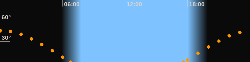 Höchster Stand (Kulmination)00:09 Uhr (h = 45.7°)