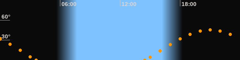 Höchster Stand (Kulmination)20:59 Uhr (h = 45.3°)