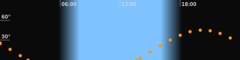 Höchster Stand (Kulmination)20:11 Uhr (h = 45.3°)