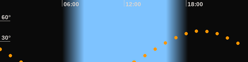 Höchster Stand (Kulmination)19:28 Uhr (h = 45.2°)