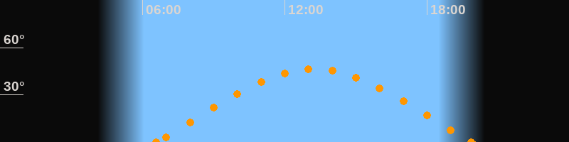 Höchster Stand (Kulmination)13:13 Uhr (h = 46.4°)