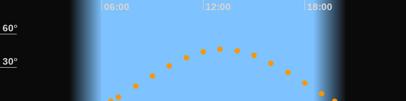 Höchster Stand (Kulmination)13:09 Uhr (h = 46.4°)