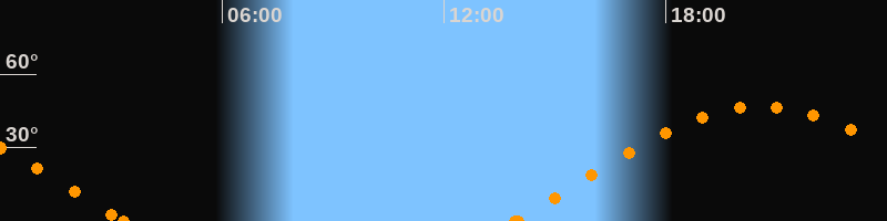 Höchster Stand (Kulmination)20:35 Uhr (h = 46.8°)