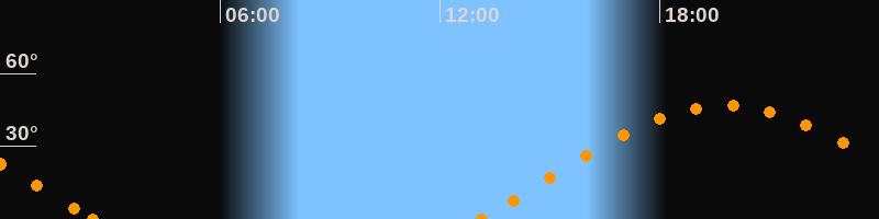 Höchster Stand (Kulmination)19:47 Uhr (h = 46.8°)