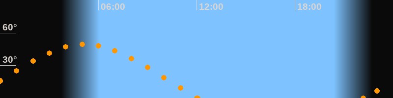 Höchster Stand (Kulmination)05:09 Uhr (h = 49.6°)