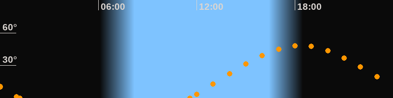 Höchster Stand (Kulmination)18:21 Uhr (h = 48.3°)