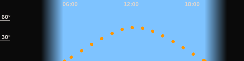 Aufgang06:19 Uhr im Osten (αAz = 72.7°)