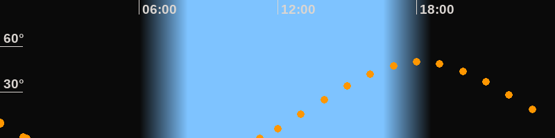Höchster Stand (Kulmination)18:09 Uhr (h = 49.8°)