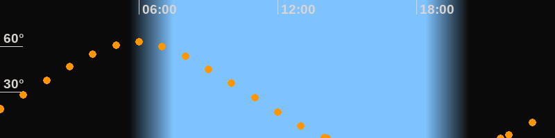 Höchster Stand (Kulmination)05:54 Uhr (h = 62.9°)