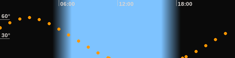 Höchster Stand (Kulmination)02:54 Uhr (h = 62.9°)