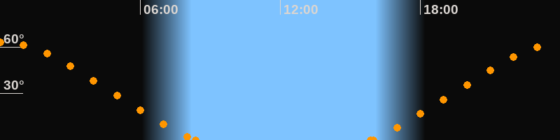 Höchster Stand (Kulmination)00:06 Uhr (h = 62.9°)