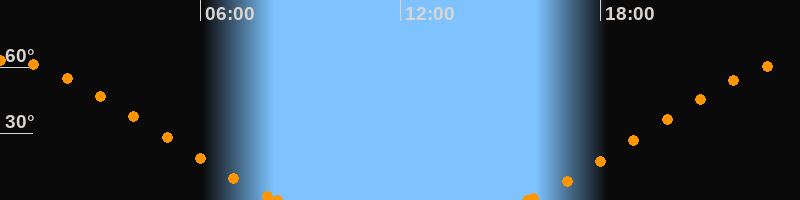 Höchster Stand (Kulmination)00:02 Uhr (h = 62.9°)