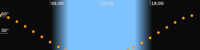 Höchster Stand (Kulmination)23:33 Uhr (h = 62.9°)